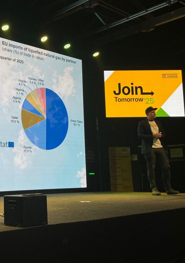 In the evening, they switch gears — and outfits — for a keynote at a major dredging & infrastructure company, sharing insights on emission-free construction for 400 guests from business, government, and policy.